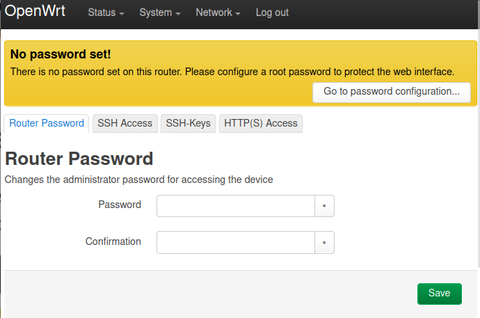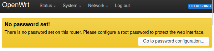 When you go to the router web interface, it was a "No password set!" warning at the top of the page.